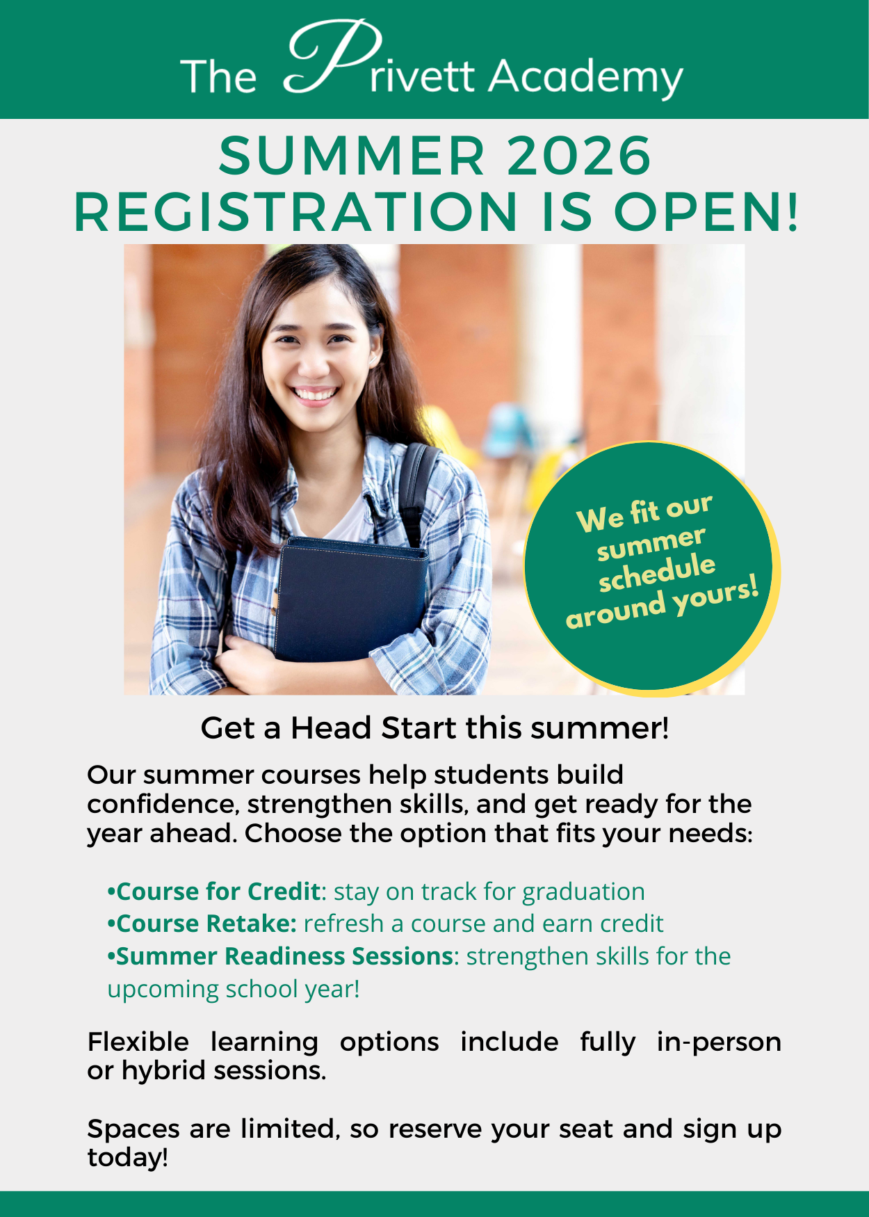 The Privett Academy is accepting applications for the current school year to provide a more one-on-one and personalized approach to distance learning. Summer School and Fall applications for the 2020-2021 school year are also being accepted at this time. We will continue with distance learning for our Summer School program and beyond depending on orders set by the state.